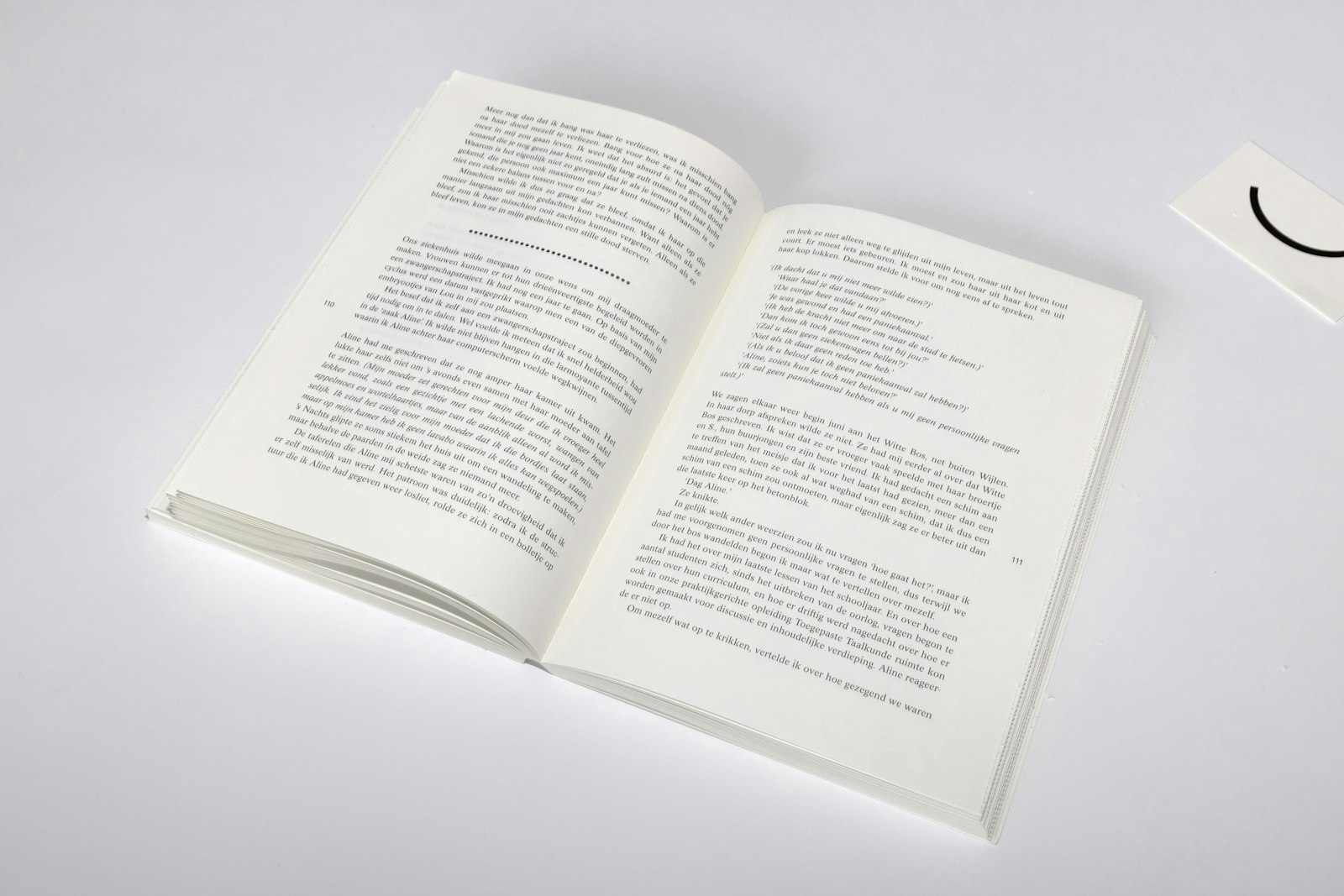 This book, which requires you to tear open the pages, serves a clear purpose; it is not a gimmick. It combines poetry with a novel, creating a kind of dual-layered effect. The poetry encourages one to read the novel, but this requires an ‘act of tearing’. Cutting open the pages is part of the reading ritual. The apparent simplicity of the design is deceptive. There are no eye-catchers here; instead, everything is in relation to each other: the paper, the binding, the typography and the subtle embossing. All of this testifies to the extremely passionate and honest approach taken by the designer and the author. It is also brave to dare publish a ‘silent book’ in times of an unbridled and attention-seeking visual culture. Tip: buy two right away, one to use and one to keep intact.