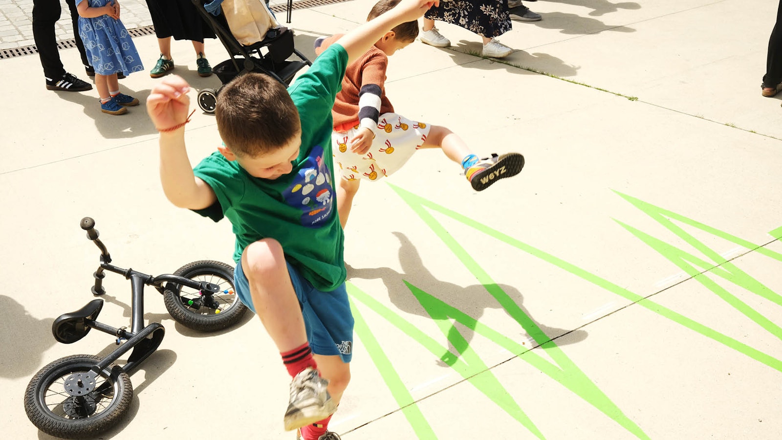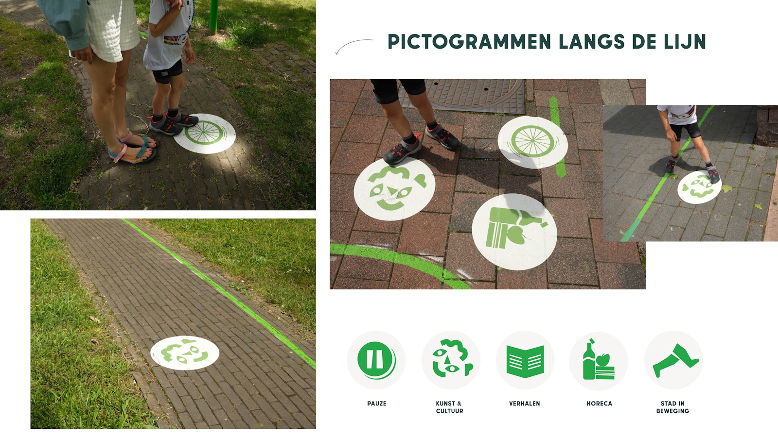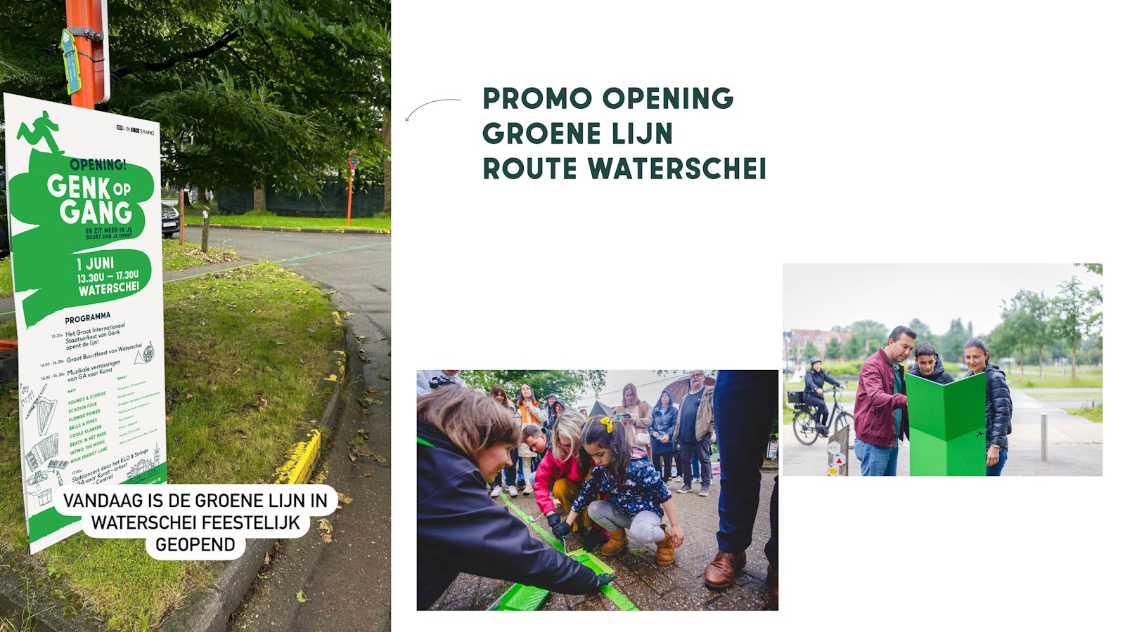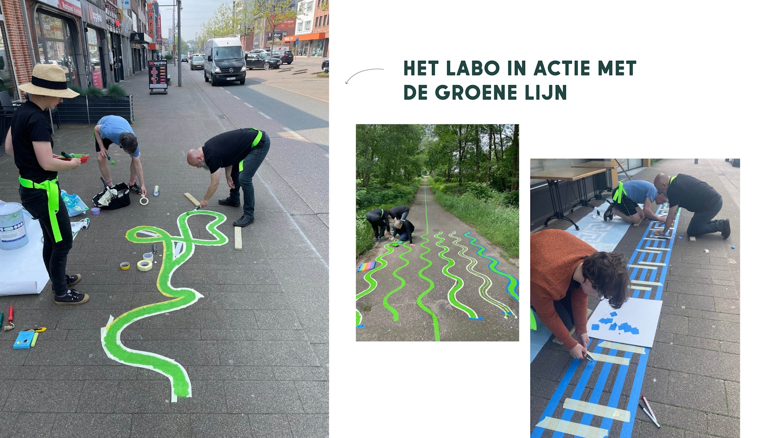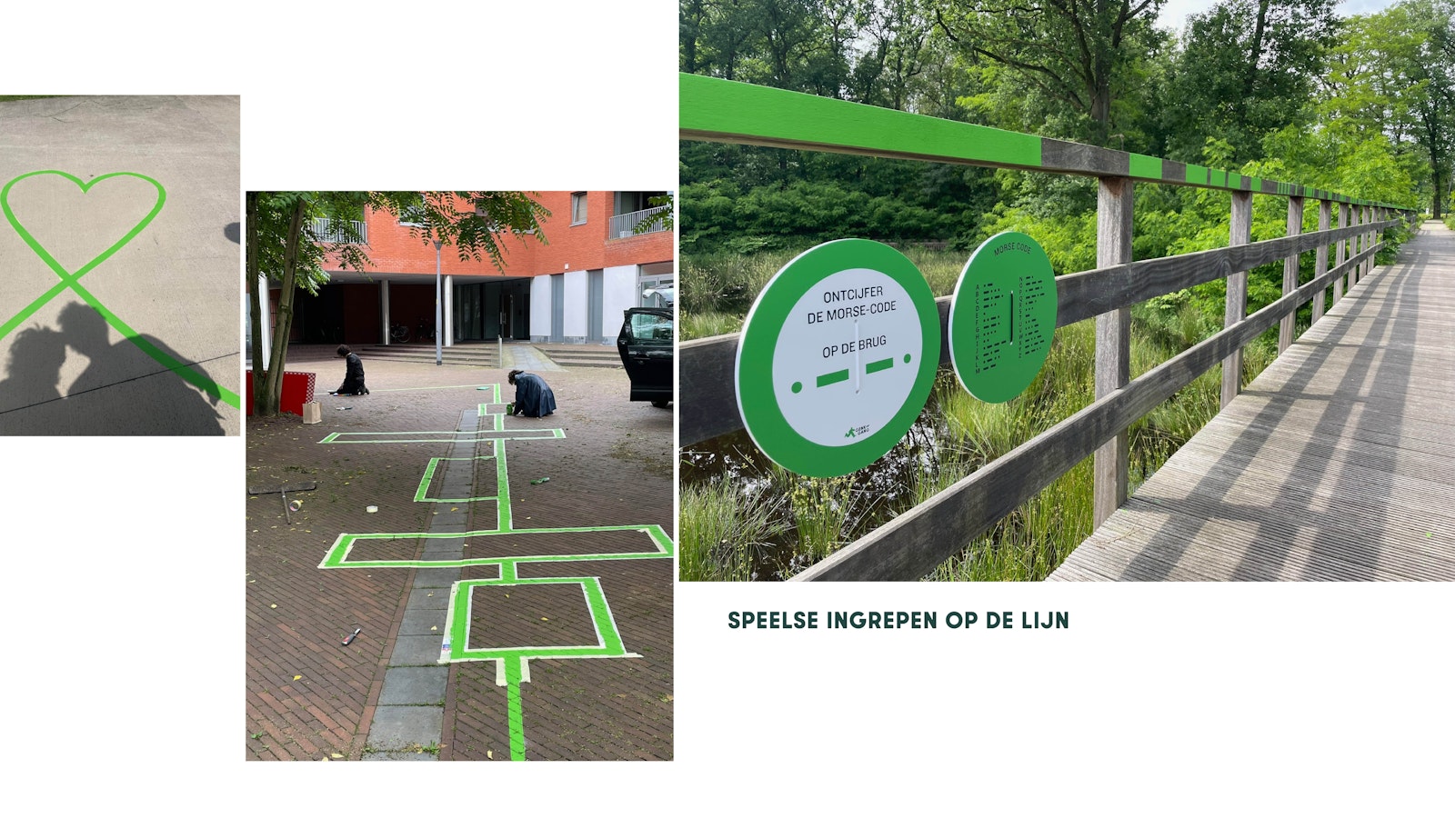 In de Franse stad Nantes zagen we hoe een ‘simpele’ lijn op de grond de verschillende toeristische hotspots verbond, en kansen gaf aan ontwerpers en kunstenaars. Het idee van een intuïtieve lijn op de grond was de basis van het project, maar in Genk kozen we ervoor om de lijn in te zetten als verbindende factor tussen inwoners (en bezoekers). Door de lijn moedigen we hen aan om hun stad en de wijken op een verrassende manier te leren kennen. In het totaal werd met buurtbewoners, wijkmanagers, stadspersoneel, uitvoerende diensten,… een route uitgewerkt voor 4 wijken; waarvan 2 gerealiseerd werden. Ook het aanbrengen van de lijn op de grond bleek een huzarenstuk. Het Labo kreeg de opdracht om creatieve uitspattingen toe te voegen, die manueel door hen werden aangebracht.