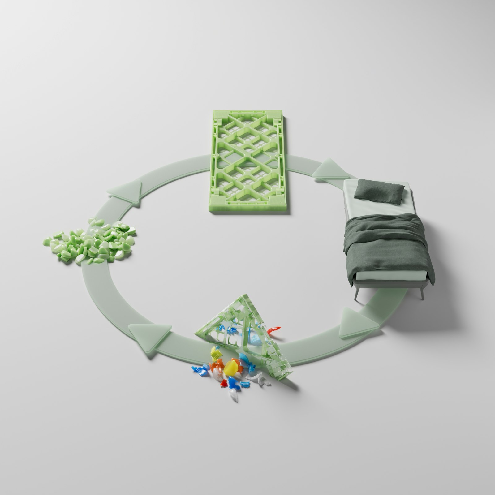 De meubelindustrie is vandaag nog steeds sterk afhankelijk van grondstoffen zoals hout, metaal, schuim en textiel. Het resultaat? Een samengestelde mix van houtsoorten, metalen en stoffen die niet meer te scheiden of te recycleren valt. Ons bedframe is 100% circulair, gemaakt uit post-consumer gerecycleerd afval. Dankzij het monomateriaal ontwerp is het frame volledig recycleerbaar na gebruik. Neonest is ook ontworpen voor multi-inzetbaarheid. Het frame kan dienen als lattenbodem, volwaardig bed, basis voor een boxspring of als hoofdbord, en zelfs als basis voor een sofa. Met gepatenteerde features zoals Neoconnect, Neohold en Neocord ontwikkelden we een innovatief klik- en schuifsysteem waarmee het frame eenvoudig gemonteerd en gedemonteerd kan worden, zonder gereedschap. Stoffering kan makkelijk bevestigd en vervangen worden, waardoor het product zowel visueel als functioneel jarenlang meegaat.