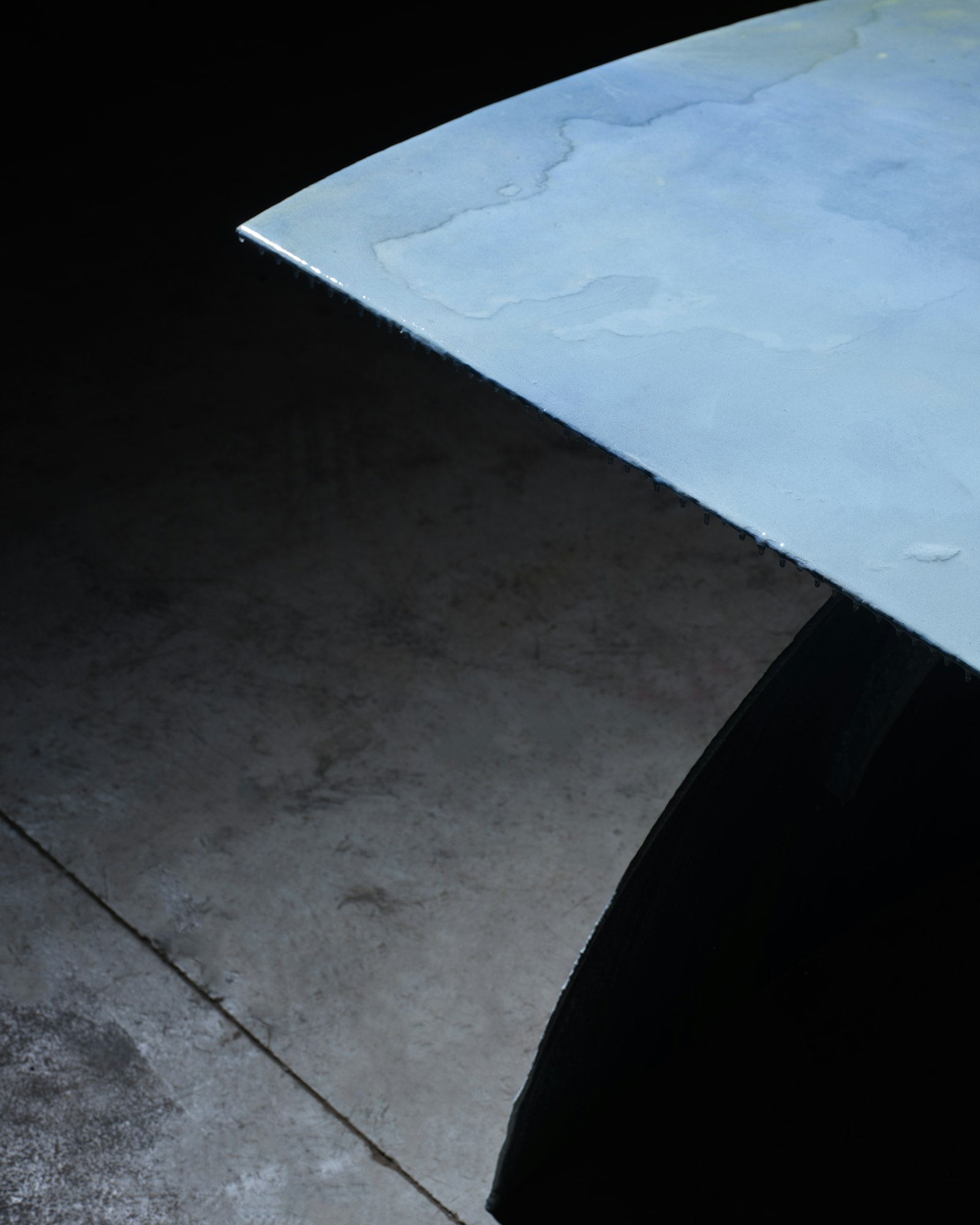 In plaats van het metaal te reinigen of te verbergen, wilden we het behouden zoals het was — met teer, aarde, littekens. We vroegen ons af: kunnen we schoonheid vinden in vervuiling, en zorg tonen voor iets wat doorgaans wordt afgevoerd?