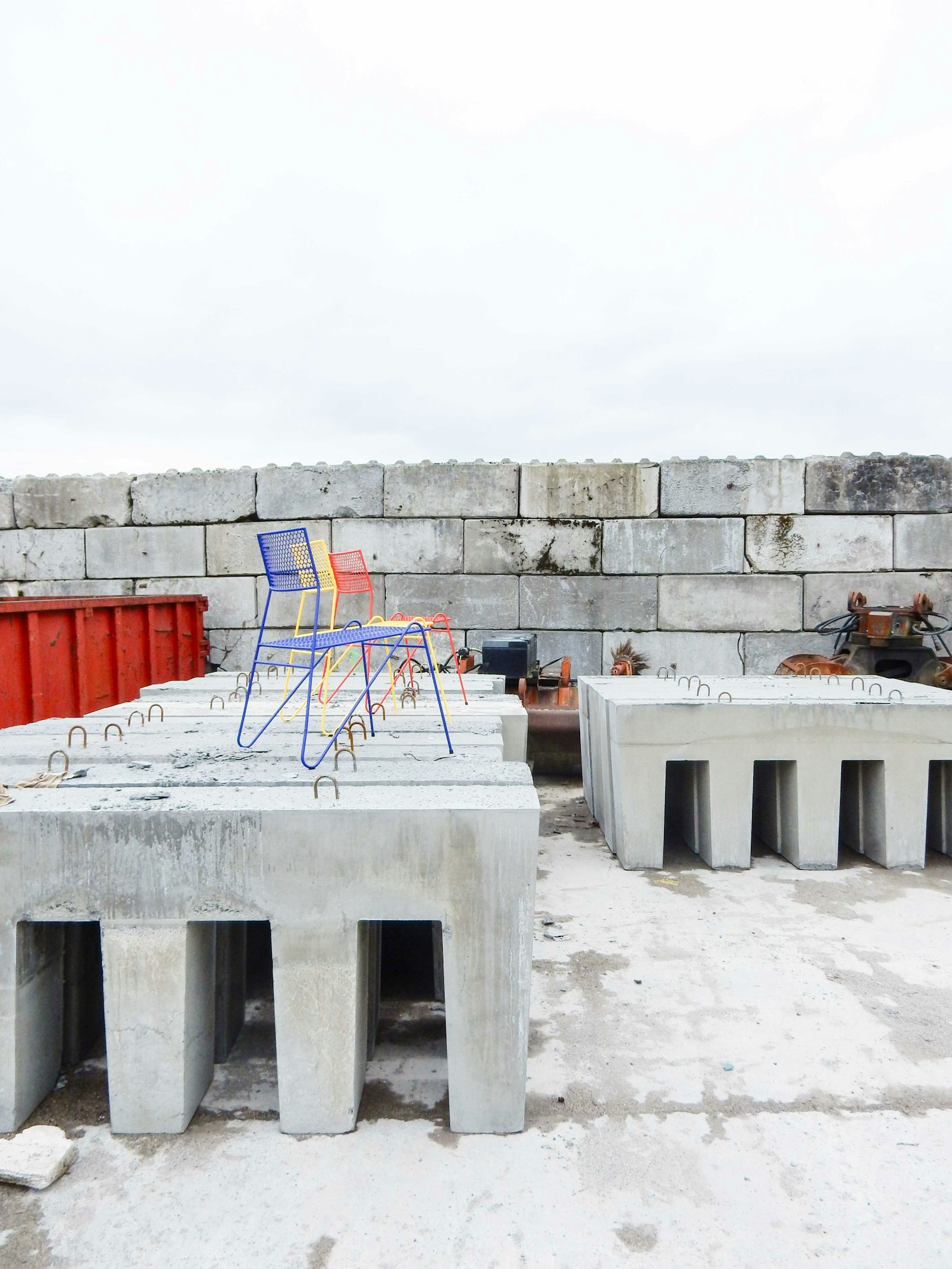 De SCRAP-Chair is een circulaire designstoel, volledig vervaardigd uit industriële reststromen. Het project vertrekt vanuit een dubbele ambitie: het herdenken van afval als grondstof én het creëren van een volwaardig, esthetisch meubel dat niet inboet aan comfort of kwaliteit. Voor het zitvlak worden restplaten hergebruikt. De perforaties in deze platen zijn geen esthetische toevoeging, maar rechtstreeks afkomstig van de industriële ponsprocessen — wat elke stoel een uniek patroon geeft. Het frame bestaat uit overschotten betonijzer, zorgvuldig gebogen en gelast tot een stevig geheel.