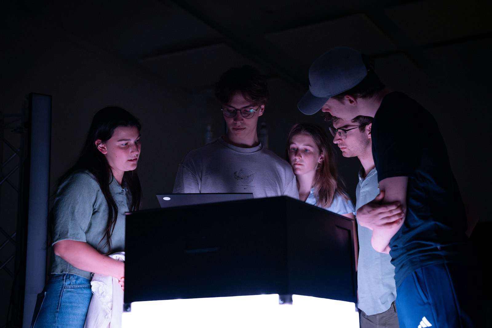 Het idee voor Shared Memories ontstond vanuit het idee om een audiovisuele installatie te bouwen waarin we abstract konden gaan werken. We delen een passie voor lichtinstallaties en motion design, en wilden graag deze kennis vertalen naar een fysieke ruimte waar beeld en geluid tastbaar worden.