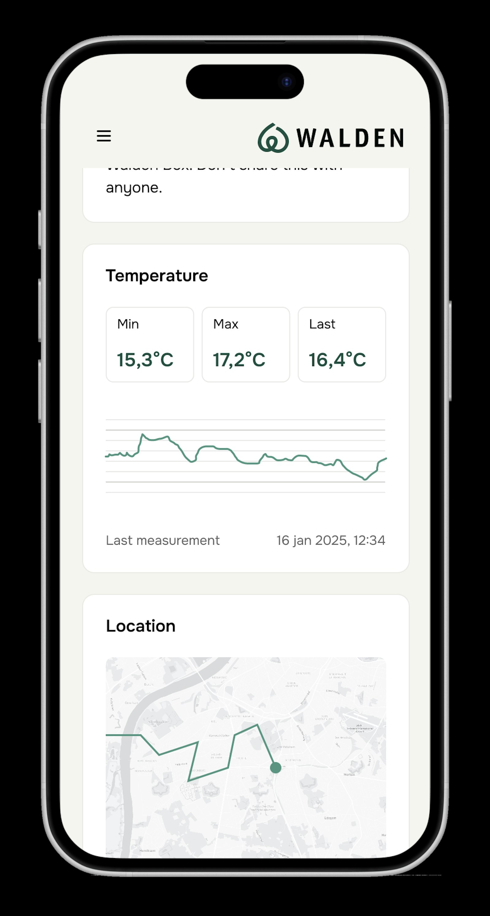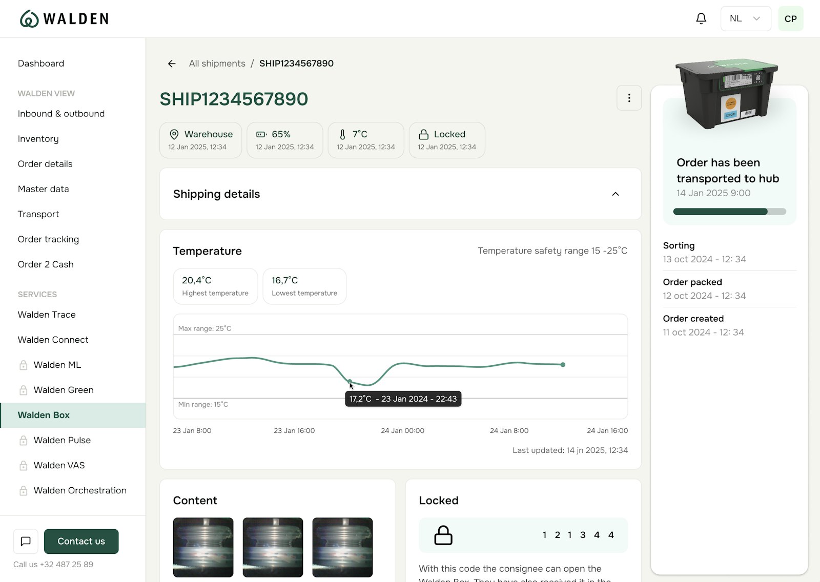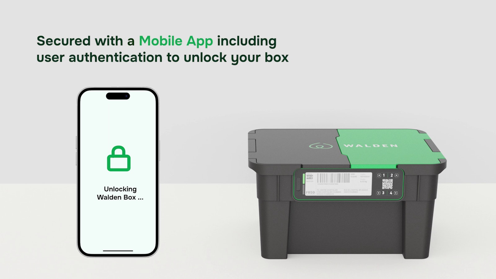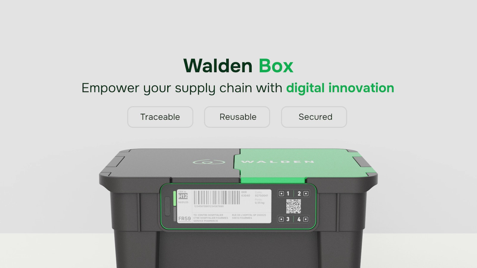 Walden BOX is een herbruikbare, slimme transportbox met tracering, temperatuurmonitoring, pincodebeveiliging en realtime connectiviteit, ontworpen voor minstens 1000 rotaties.